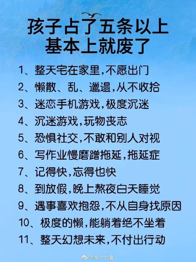 孩子占其中五条基本就废了。