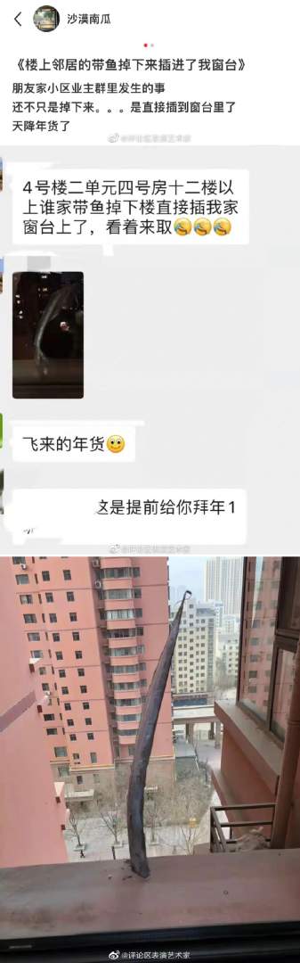 飞来的年货之楼上的带鱼插进了我的窗台.