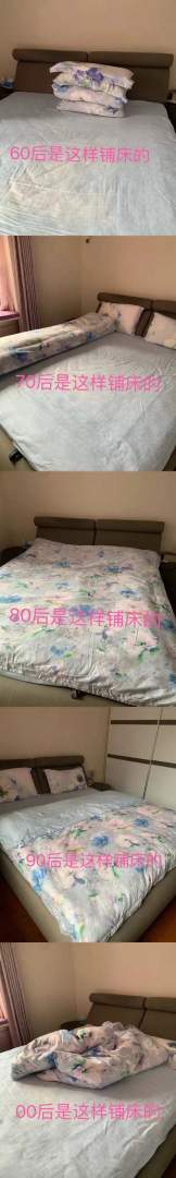 不同年代人的铺床方式。