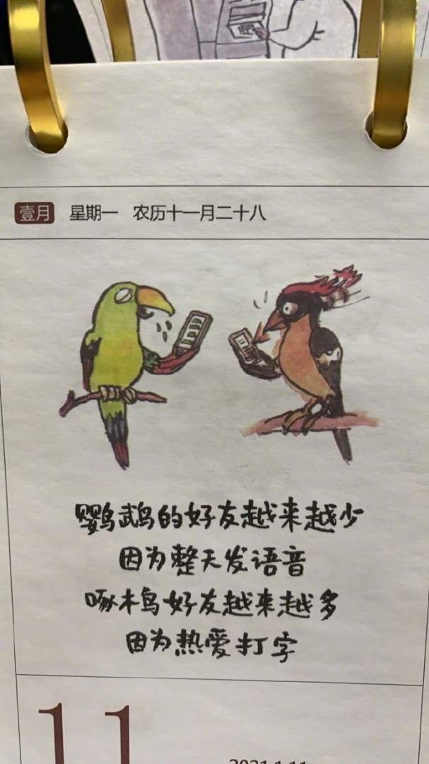 PS:啄木鸟发一条信息就要换一个屏幕。