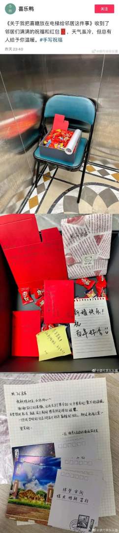 把喜糖放在电梯给邻居这件事。