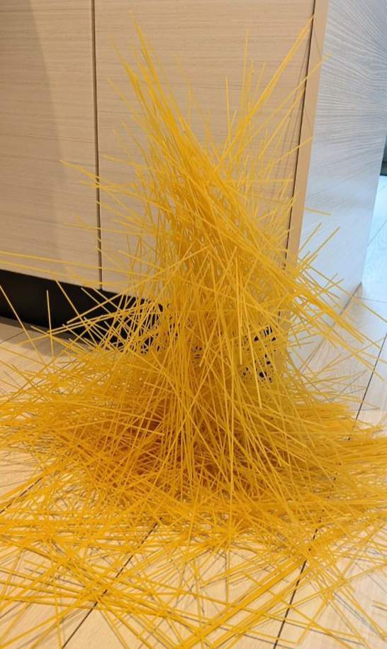 把五公斤的意大利面掉到地板上后,
