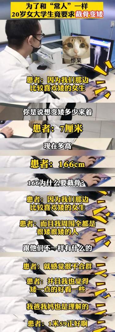 20岁女大学生为“合群”竟要求截骨变矮。