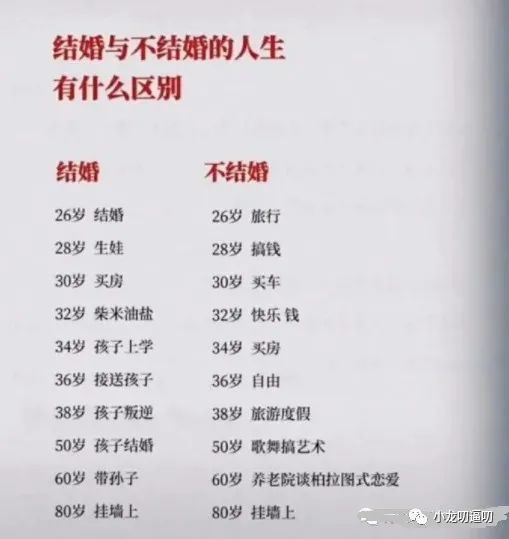 一位网友列出的结婚和不结婚的区别