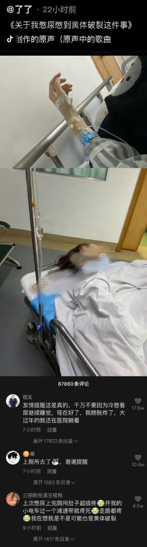 因为憋尿憋到黄体破裂。