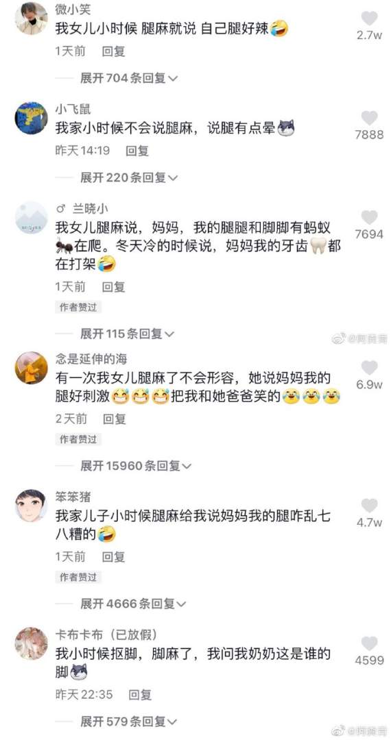 小朋友对腿麻的描述。